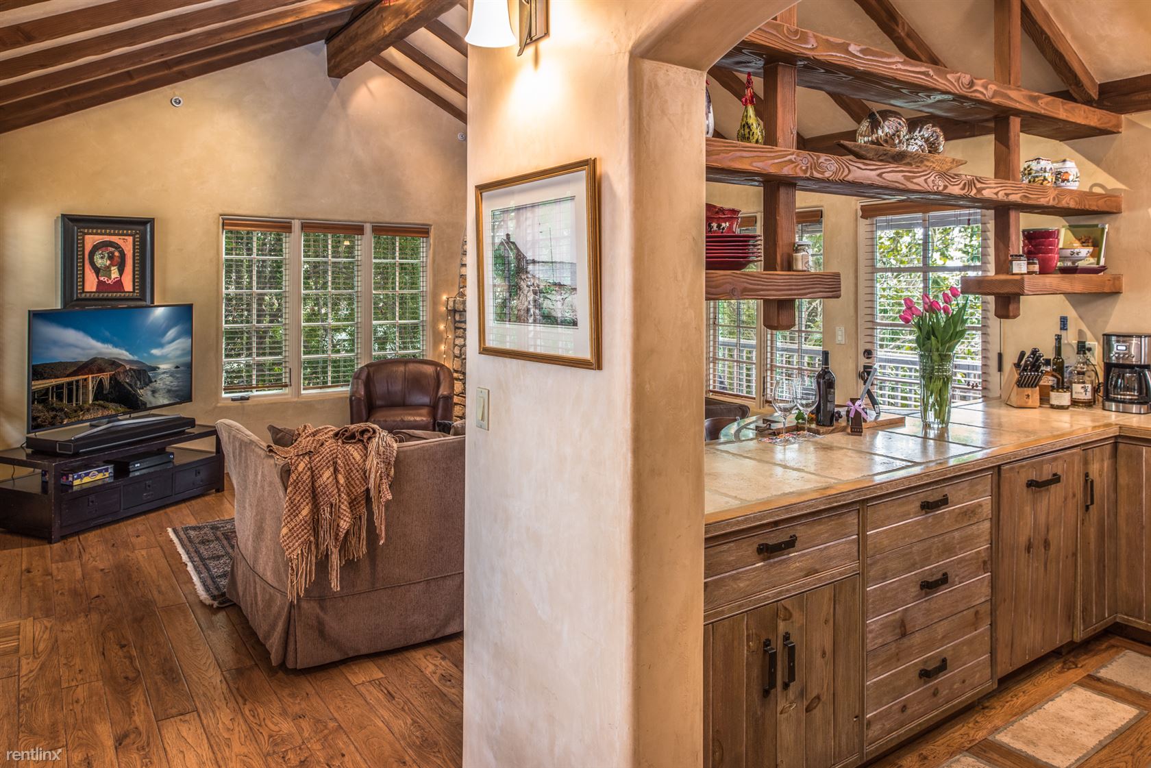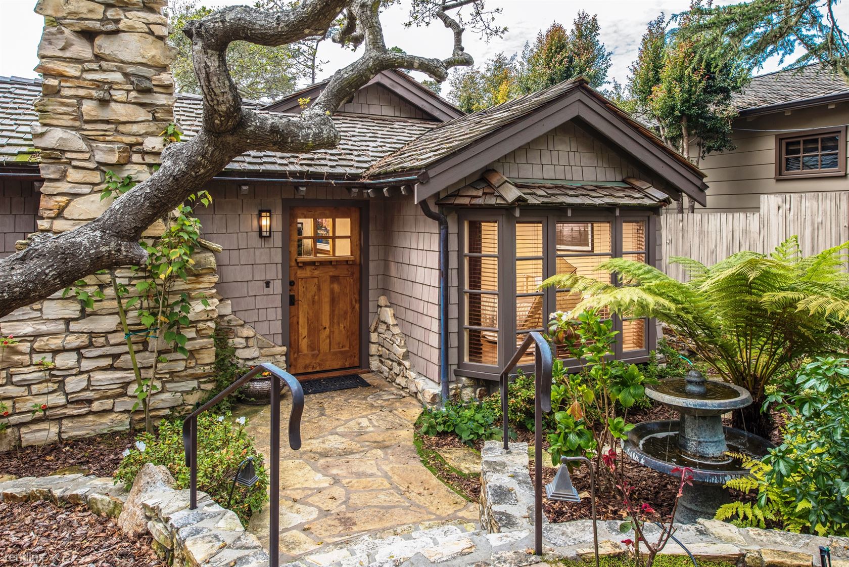 ***Please Do Not Disturb Tenants or Go Onto The Property Without the Listing Agent!*** ***The rental amount ranges from $6401 to $12,710 per month depending on length of stay and time of year*** A cottage with terraced patios and garden areas, renovated and enhanced in Old World style but with all the modern conveniences. Just a 5-minute walk to shopping and dining in downtown Carmel, and 10 minutes by car to golf and sightseeing in Pebble Beach, vintage Victorian homes and Monarch butterflies in Pacific Grove, or to historic Cannery Row and the Monterey Bay Aquarium. A sophisticated rustic ambiance greets visitors entering the 2,100-square-foot residence, with hand-scraped hardwood floors, plaster walls and open-beam ceilings in addition to vintage furnishings and original paintings, photography and sculptures throughout. Ferns and rhododendron frame the flagstone walkway to the front door, opening to the living room has a gas fireplace and a 42-inch HDTV. Dining area looks out on the garden and patio area outside. French doors from the family room open onto a brick patio with comfortable seating, a Weber charcoal barbecue, and an outdoor fireplace. The kitchen has a four-burner Viking gas range. A whole-house sound system is controlled from the pantry. The family room, has a Carmel stone gas fireplace, 42-inch HDTV. A small sitting room can be used for extra sleeping, with a daybed and armoire. Next to it is a bedroom with queen bed. A hallway bathroom has a tub/shower combination. The master bedroom suite has a king bed. The en suite bath has a shower with a built-in seat and steam option and a separate jetted tub. The bedroom downstairs has a four-poster king bed and 42-inch HDTV with windows looking out onto the back yard garden. A laundry room with washer and dryer and storage space are also on this level. Parking for one small vehicle is available in the driveway, with additional parking on the street. Small non-barking dogs will be considered. (RLNE4122678)