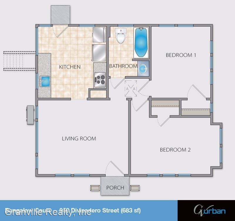 Bungalow Court includes 8 beautiful Bungalow style units; 5 original historic units that have been redesigned with modern features and 3 totally new units. These cozy Bungalows range from 672 square feet to 683 square feet and are available in 1 and 2 bedrooms with a living room, fully equipped kitchens with granite counters and bathrooms with tub and shower.
