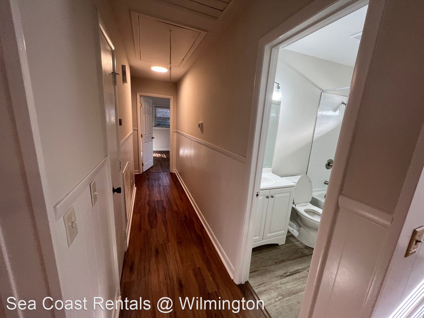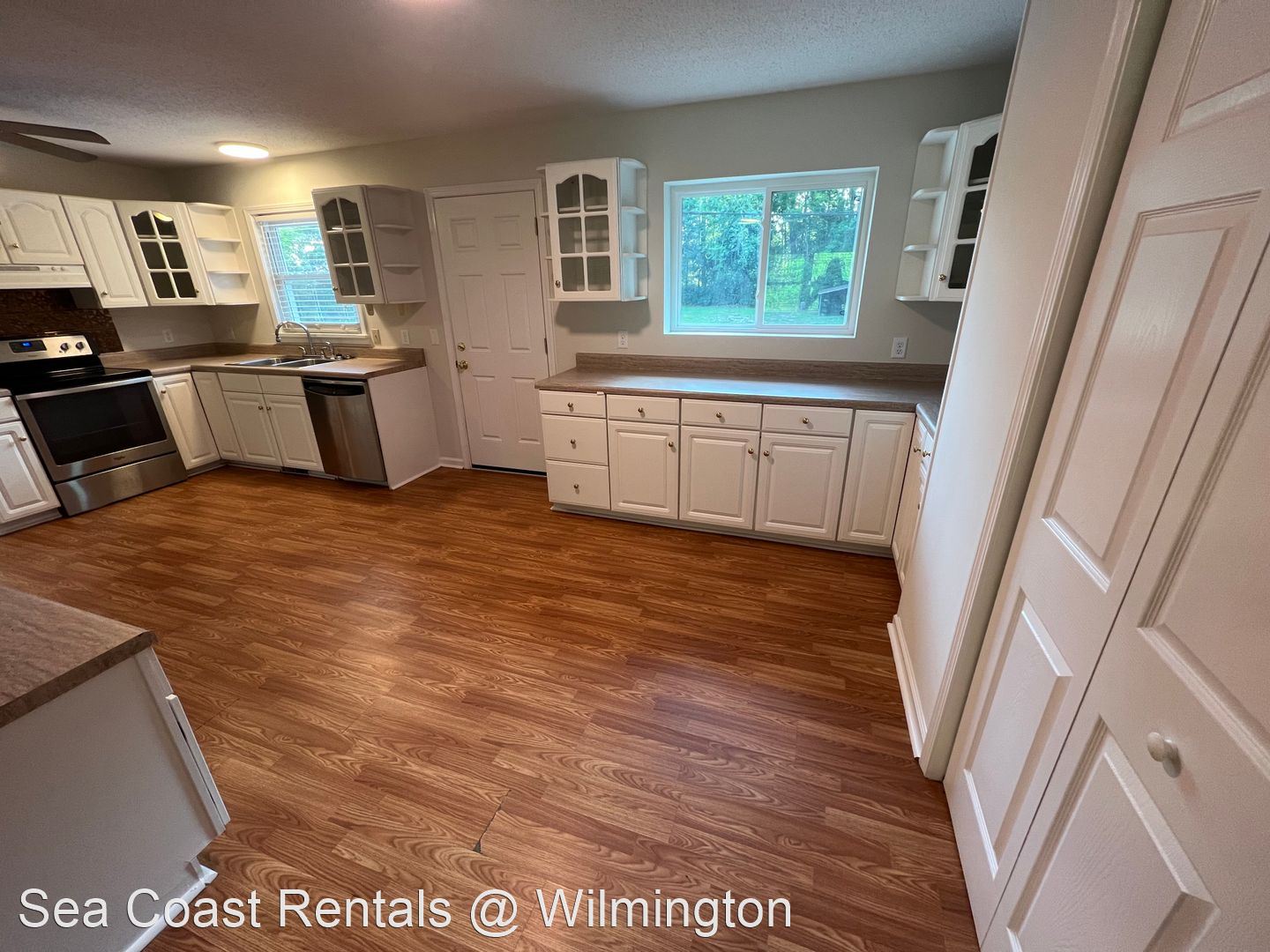 3 bedroom 2 bath located located in Porters Neck , Lawn maintenance included - Recently updated brick ranch on Futch Creek Road. Open floor plan with huge living room and a kitchen that is large with stainless steel appliances. Right off the kitchen is a spacious formal dining room. Newly painted through-out with new flooring and remodeled bathrooms. To the left of the living room, all three bedrooms and bathrooms are located. Home sits on over half an acre of land and has trees in the yard along with a back deck and lower patio area. This spacious backyard is completely fenced in with a storage shed at the very back. Conveniently located to grocery stores, shopping, and restaurants. Short distance to the beach and I-40. Application Fees Apply No Smoking No Co-Signers Office Hours / Showings: M - F 9am - 5pm Schools: Porters Neck Elementary Holy Shelter Middle Laney High